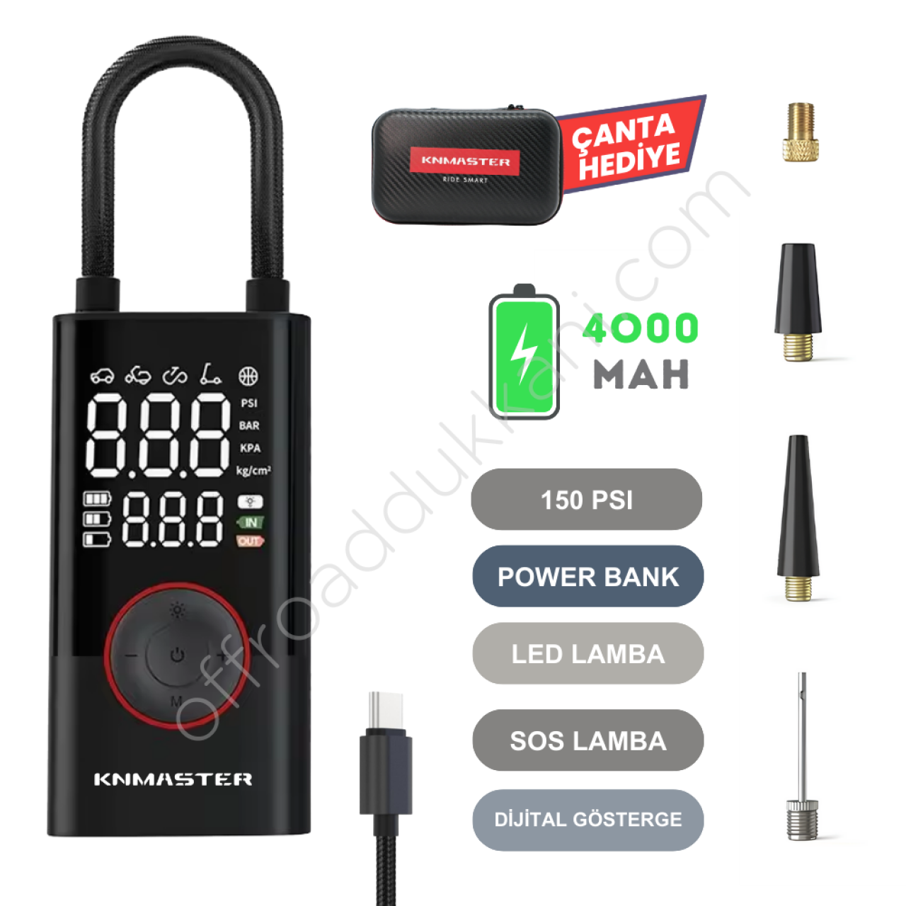 Knmaster LP200: 150 PSI Dijital Göstergeli Şarjlı Hava Pompası