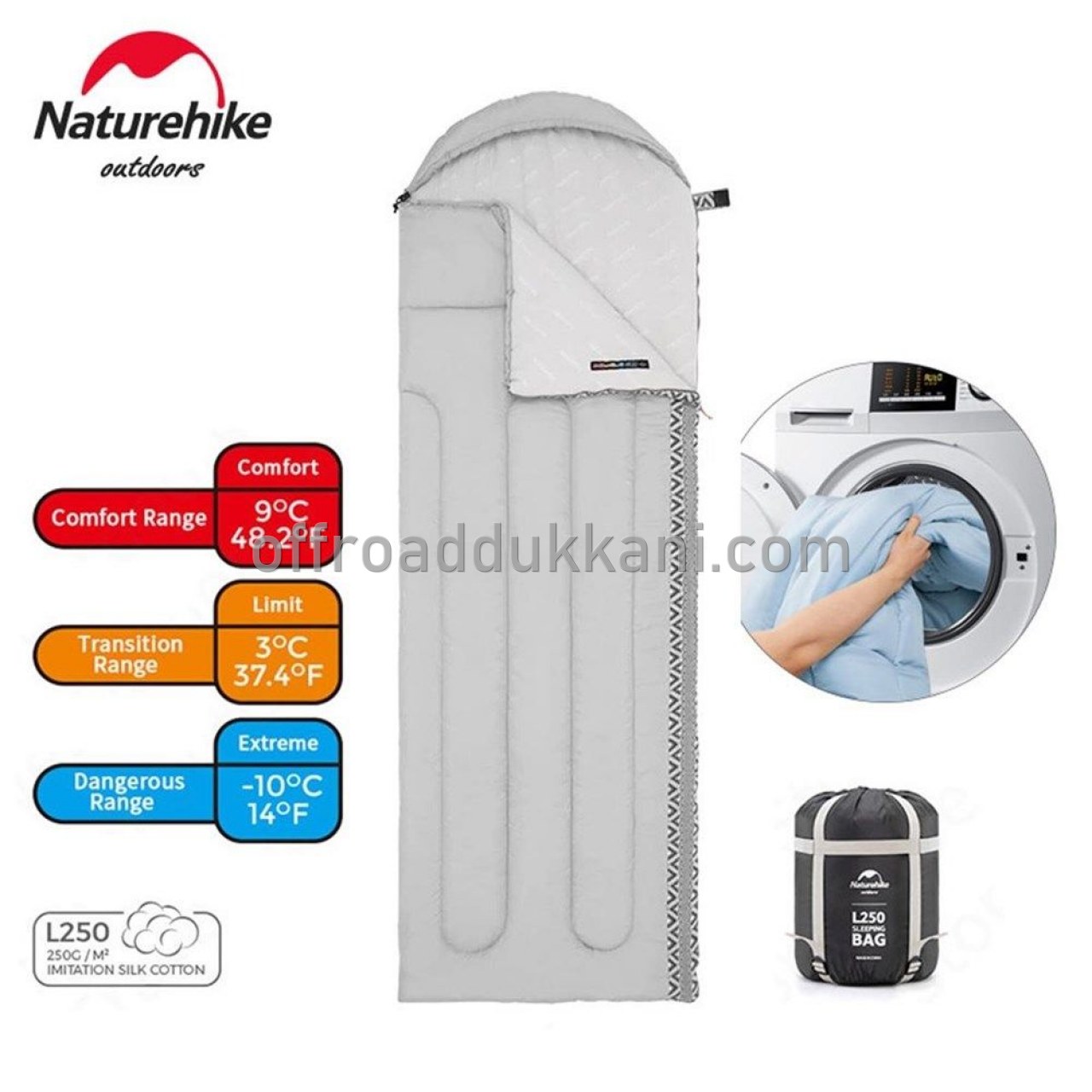 L250 uyku tulumu, nemli ortamlarda yüksek dayanıklılık, iyi ısı direncine sahip pamuk ipliği kullanır, uyku tulumunun ısıyı iyi tutmasına yardımcı olmak için nefes alabilen Pongee kumaşın dış tabakası ile birlikte ısı tutulmasını zorlaştırır. kullanıcı.