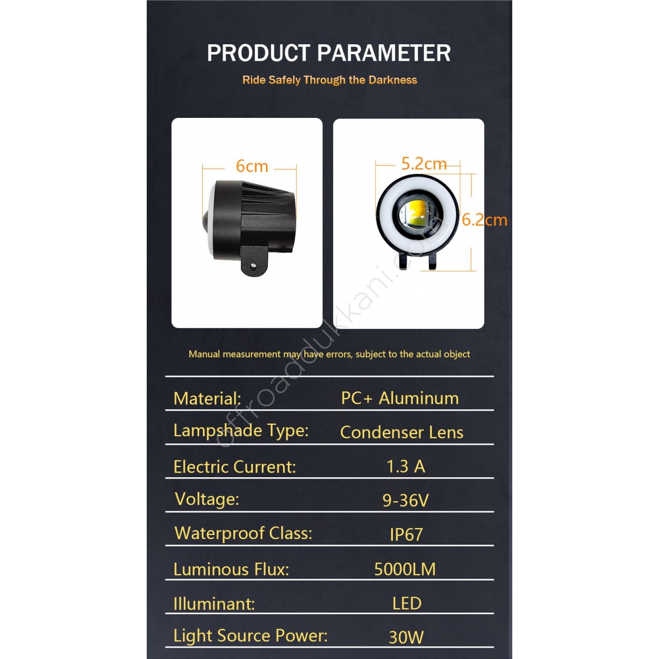 Offroad sis lambası sarı-beyaz 7 renk gündüz ledli dönerli 12-60v set