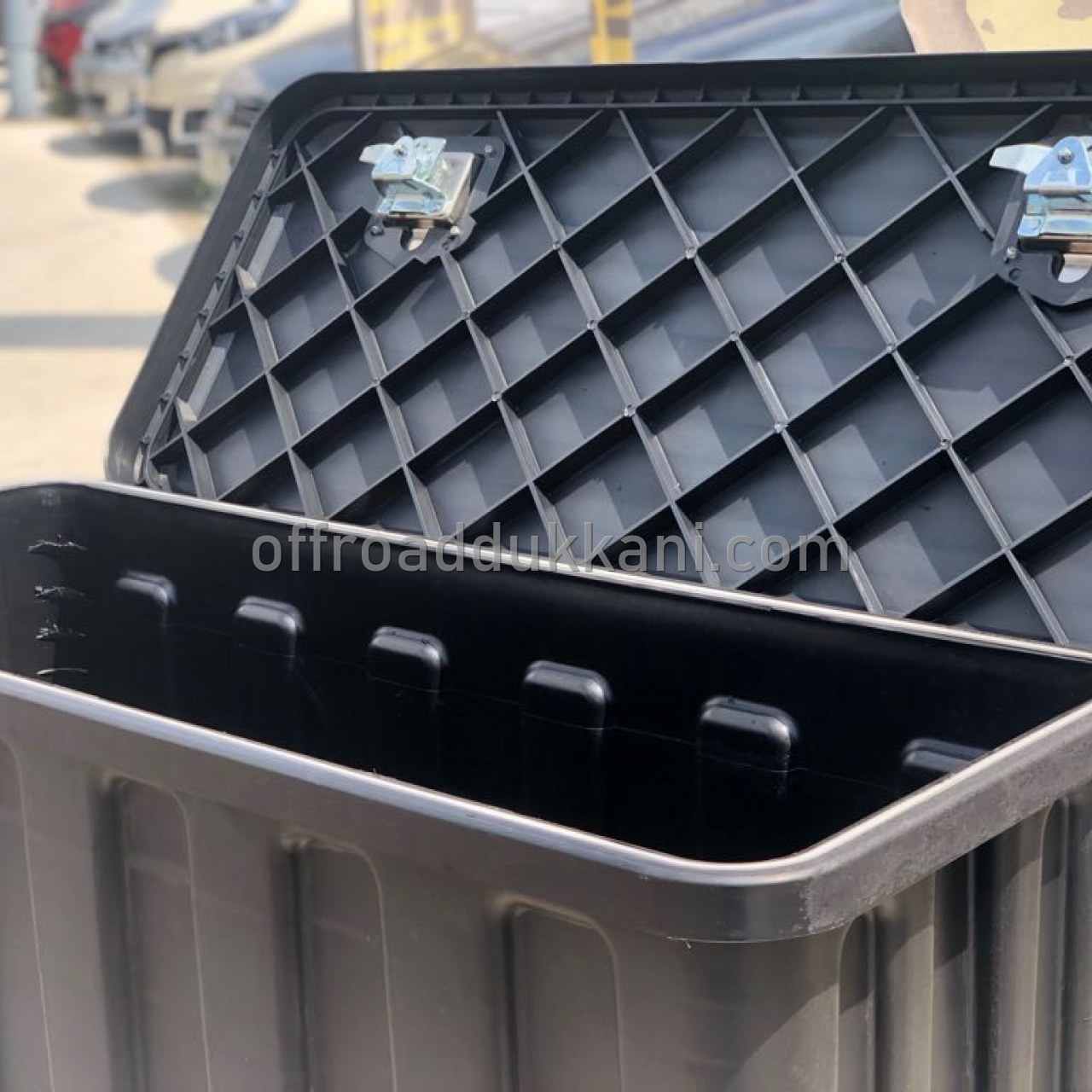 Pick Up kasasında veya arazi araçları tavan sepetinde kullanılmaya uygun sert plastikten üretilmiş sandık kutu.